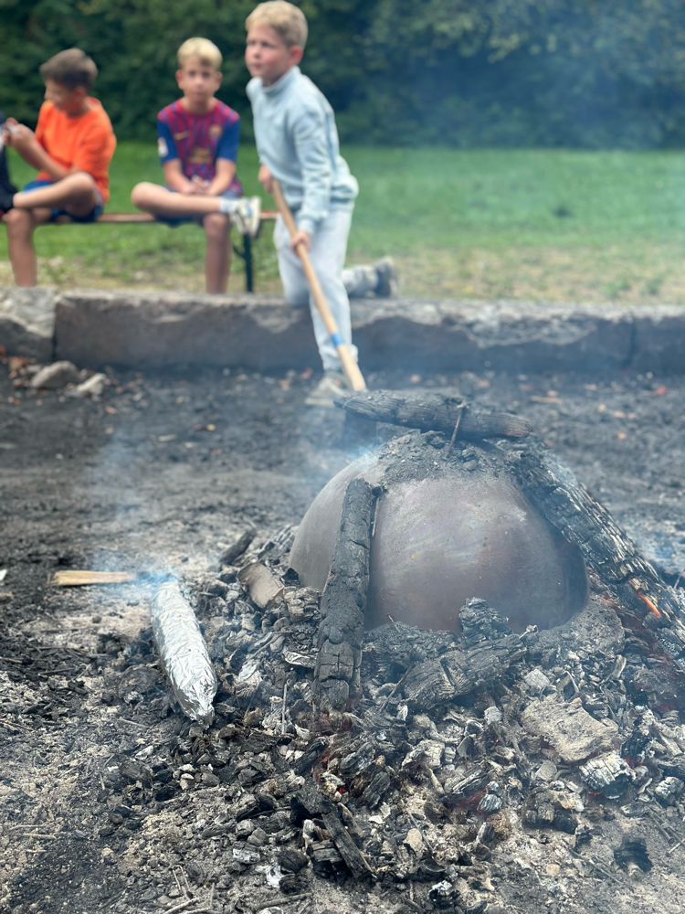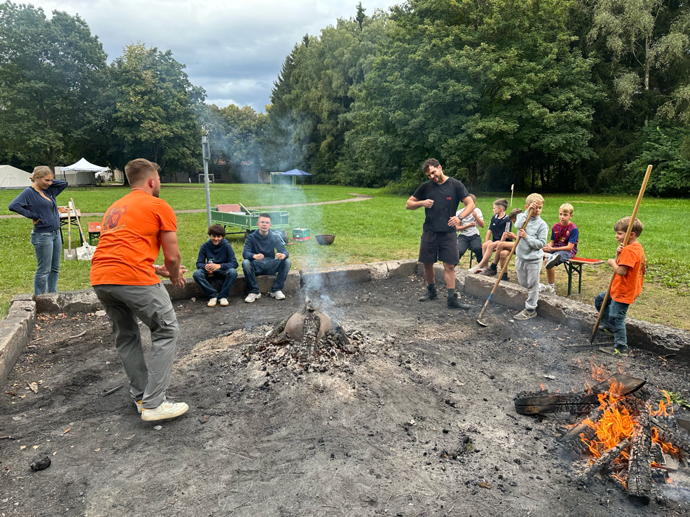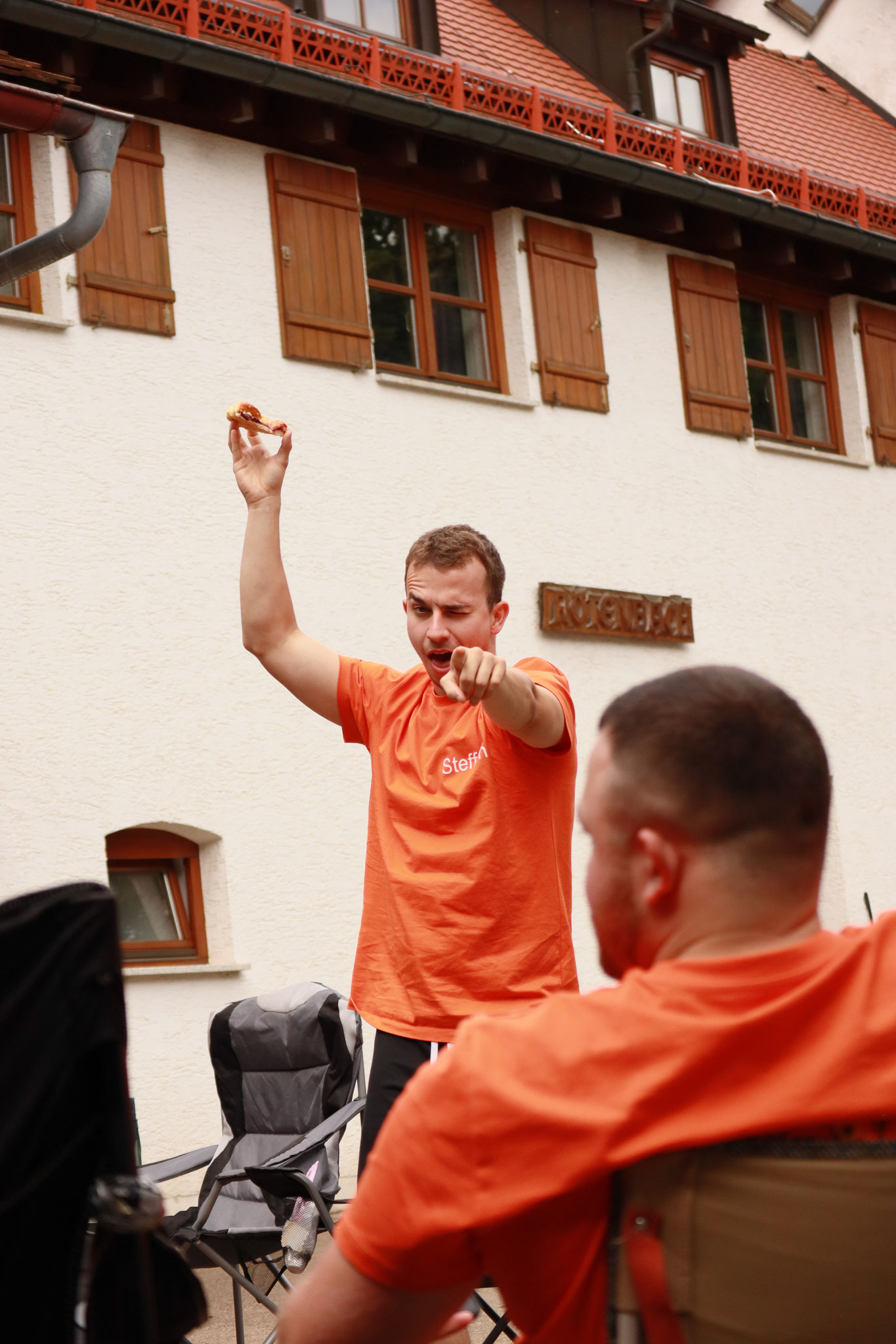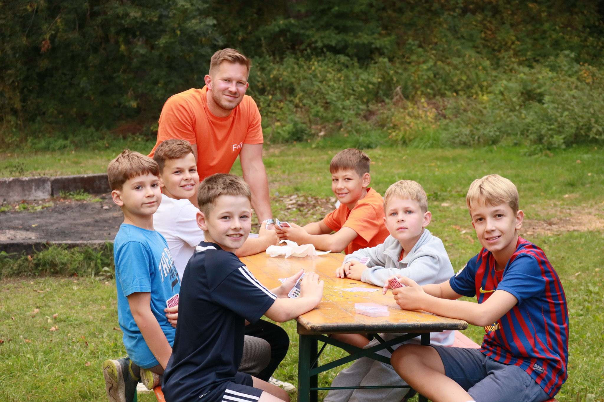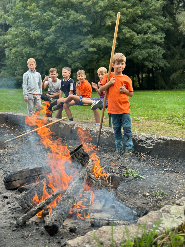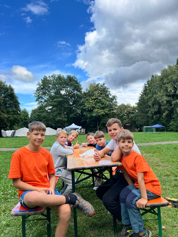 Für uns Leiter begann der Tag schon früh – um 6:45 Uhr hieß es: raus aus den Schlafsäcken, schnell frisch machen und dann ab zur Stillen Zeit. In dieser Runde besprechen wir alles Wichtige für den Tag, verteilen die Aufgaben und überlegen uns, wie wir die Kinder am besten wecken. Heute war das noch nicht nötig – die Energie ist bei allen noch mehr als ausreichend vorhanden.