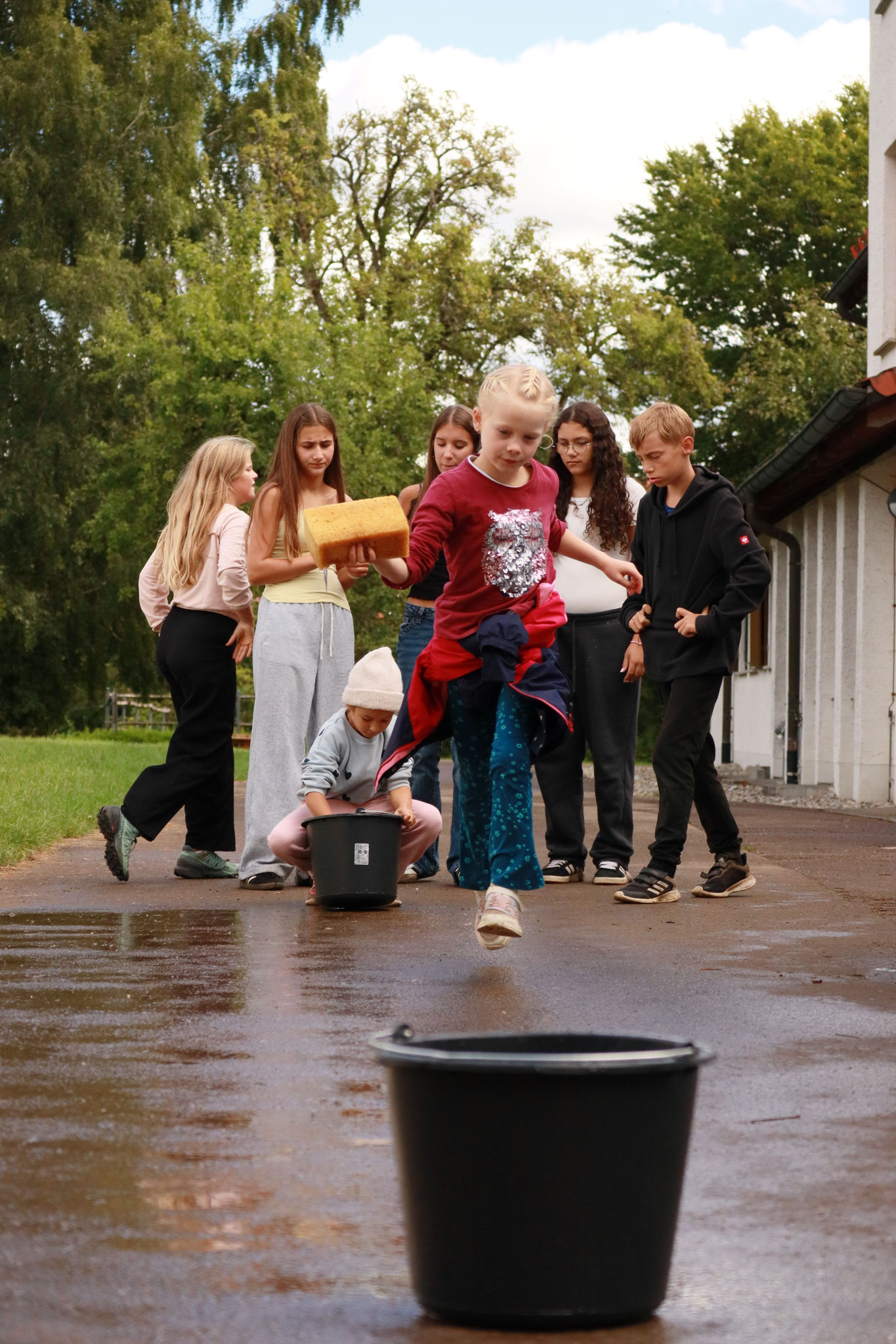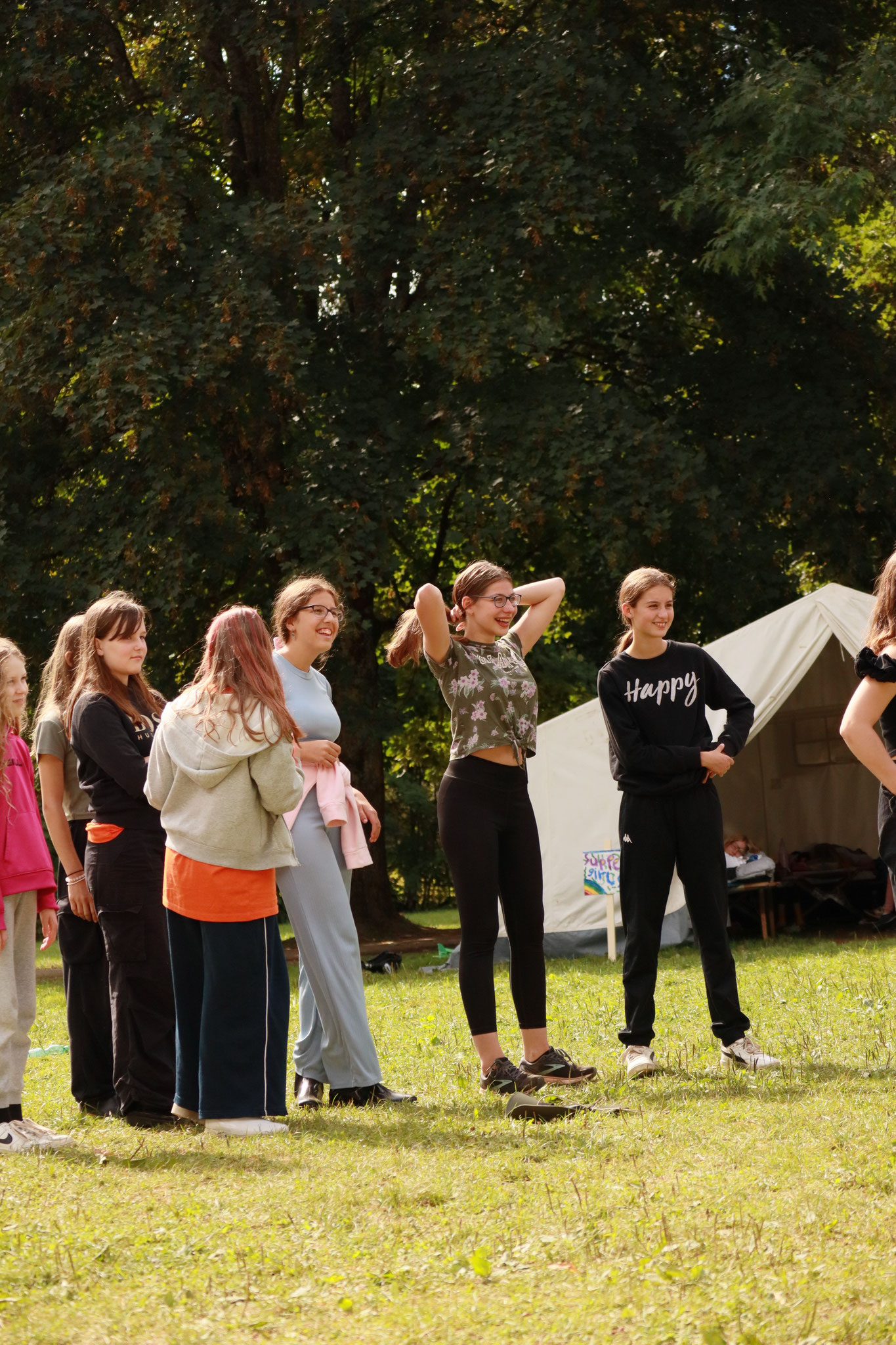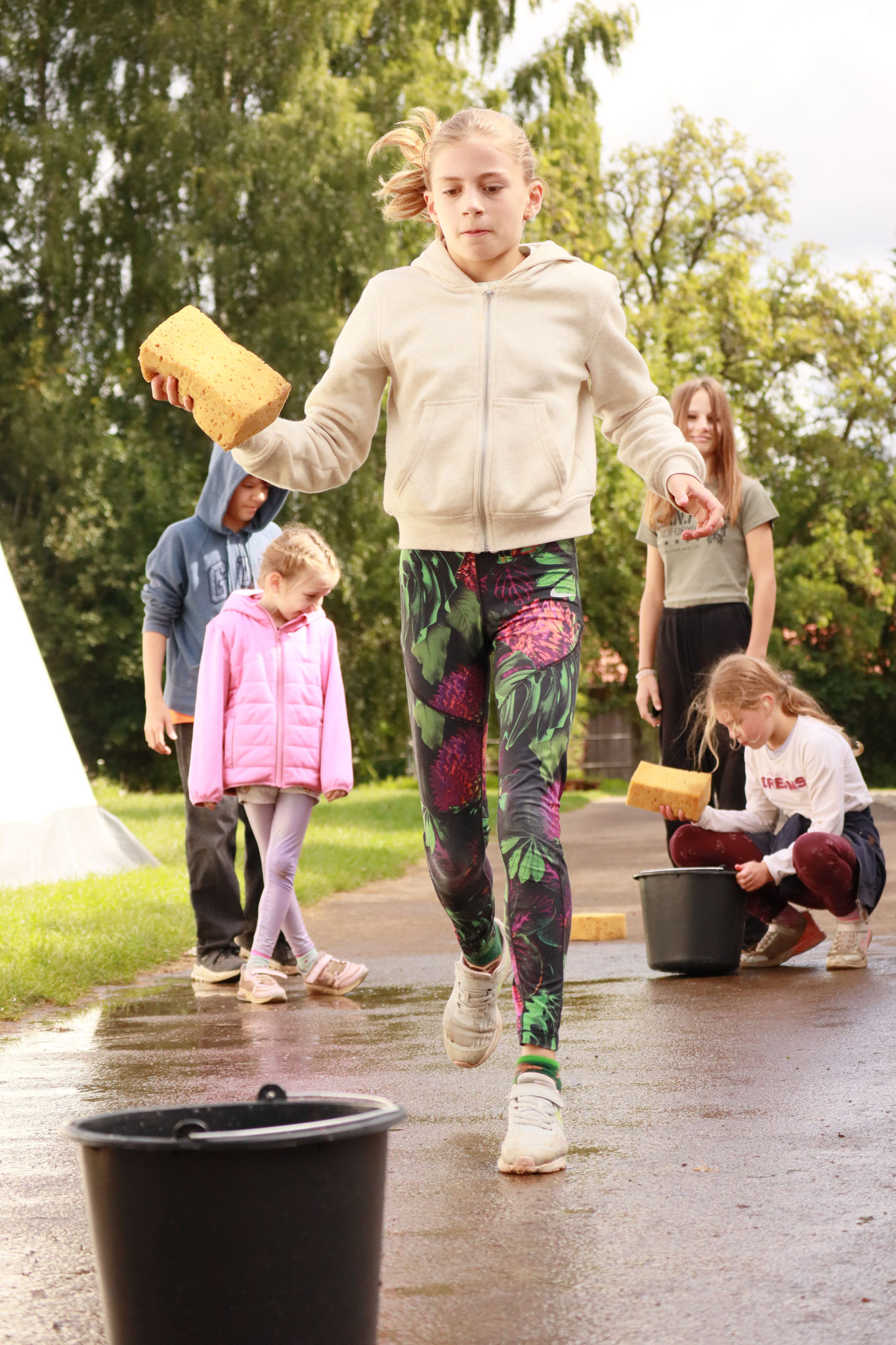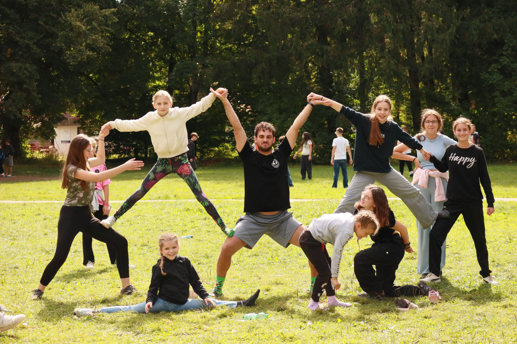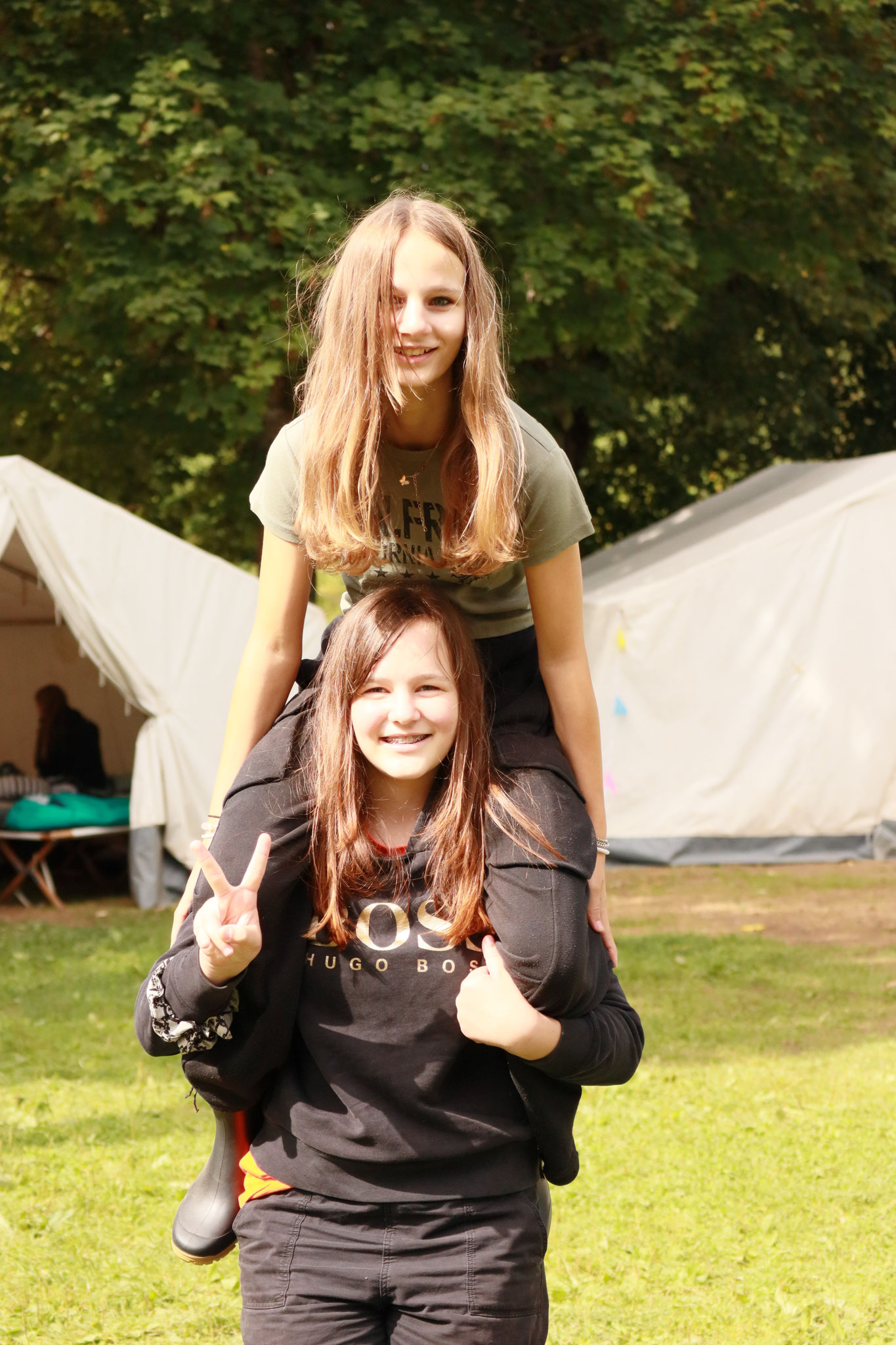 Nach dem großen Spiel verwandelte sich der Zeltplatz plötzlich in eine Turnhalle. Viele Kinder entpuppten sich als wahre Akrobaten: Es wurden Choreografien ausprobiert, Räder geschlagen, Brücken gebaut und allerlei Kunststücke gezeigt. Die Begeisterung war riesig – und die lachenden Gesichter auf den Bildern sprechen wohl am besten für sich.