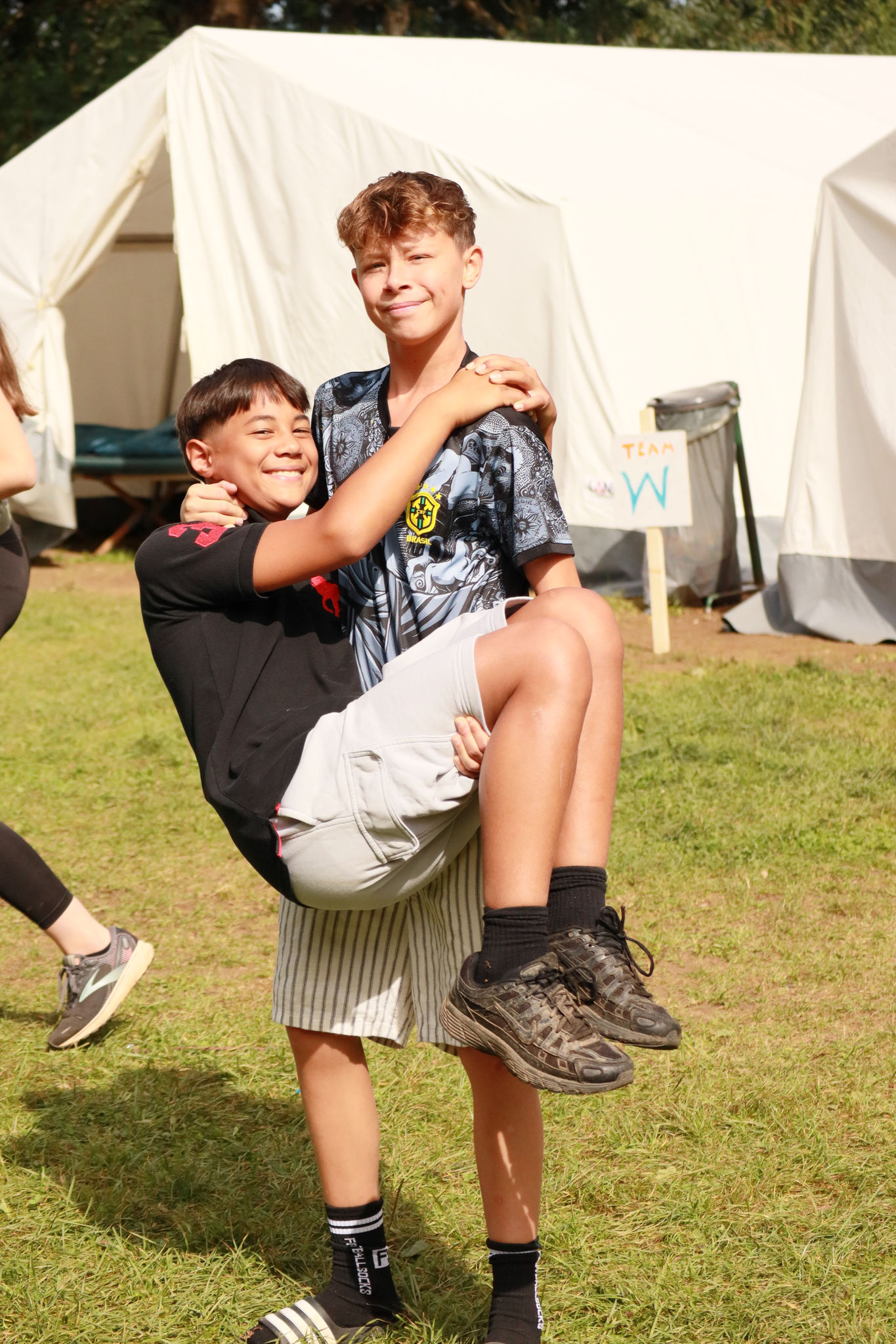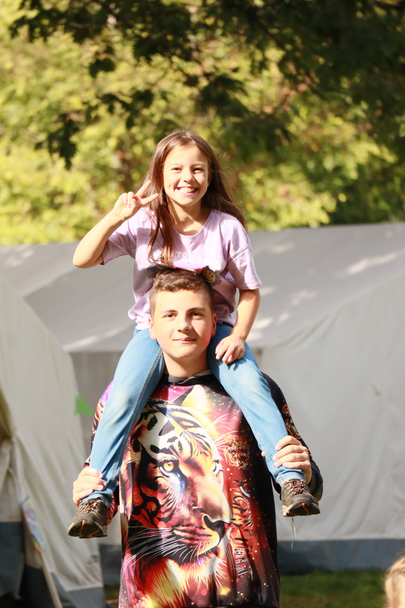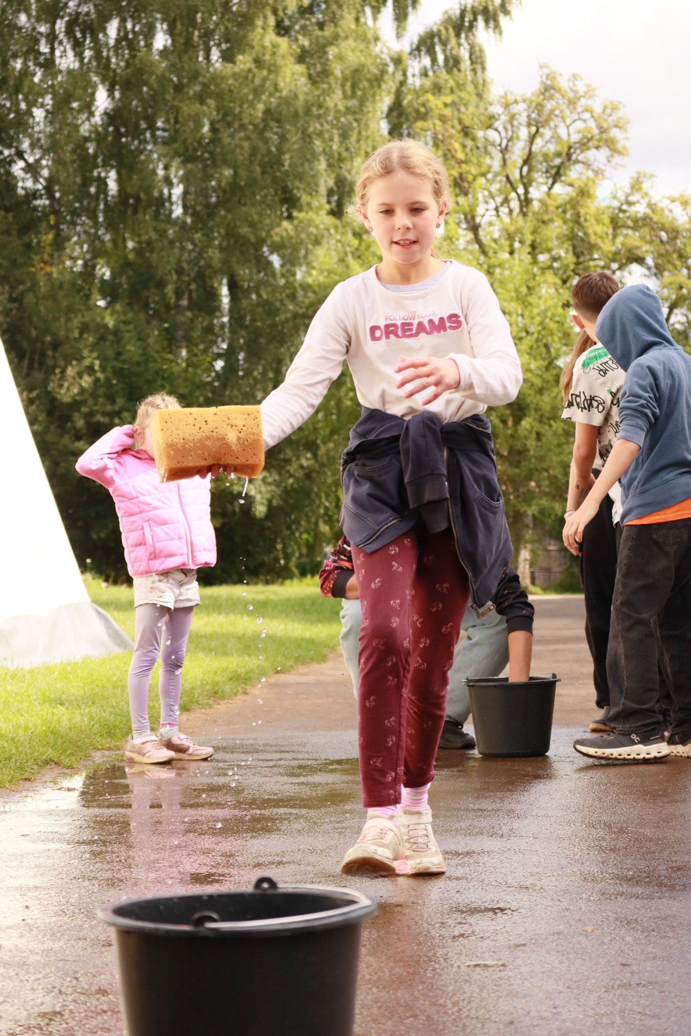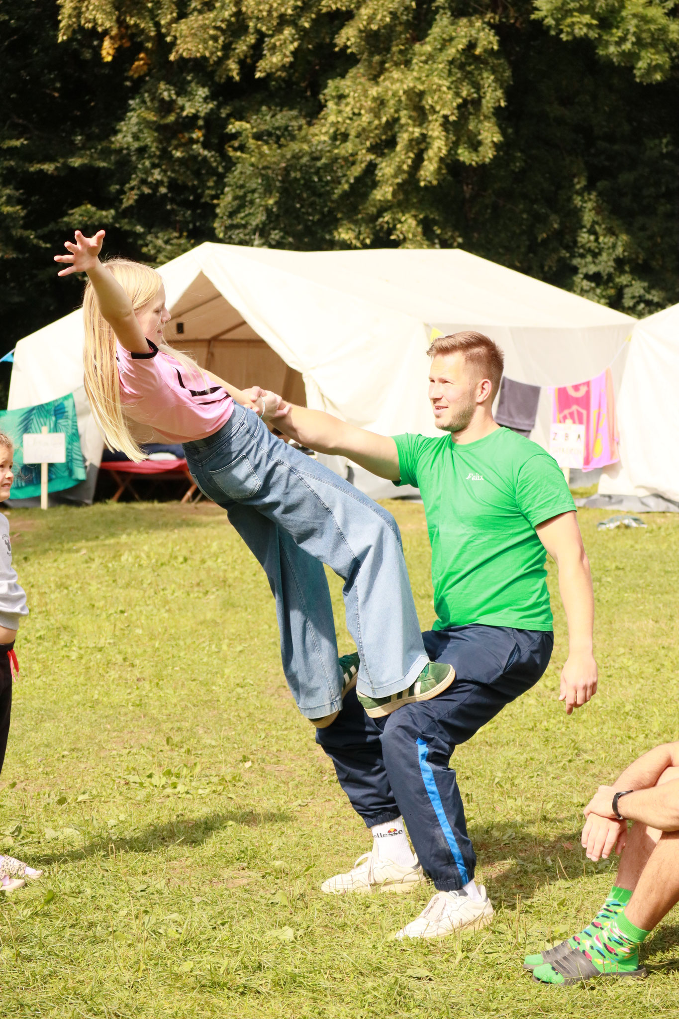 Nach dem großen Spiel verwandelte sich der Zeltplatz plötzlich in eine Turnhalle. Viele Kinder entpuppten sich als wahre Akrobaten: Es wurden Choreografien ausprobiert, Räder geschlagen, Brücken gebaut und allerlei Kunststücke gezeigt. Die Begeisterung war riesig – und die lachenden Gesichter auf den Bildern sprechen wohl am besten für sich.
