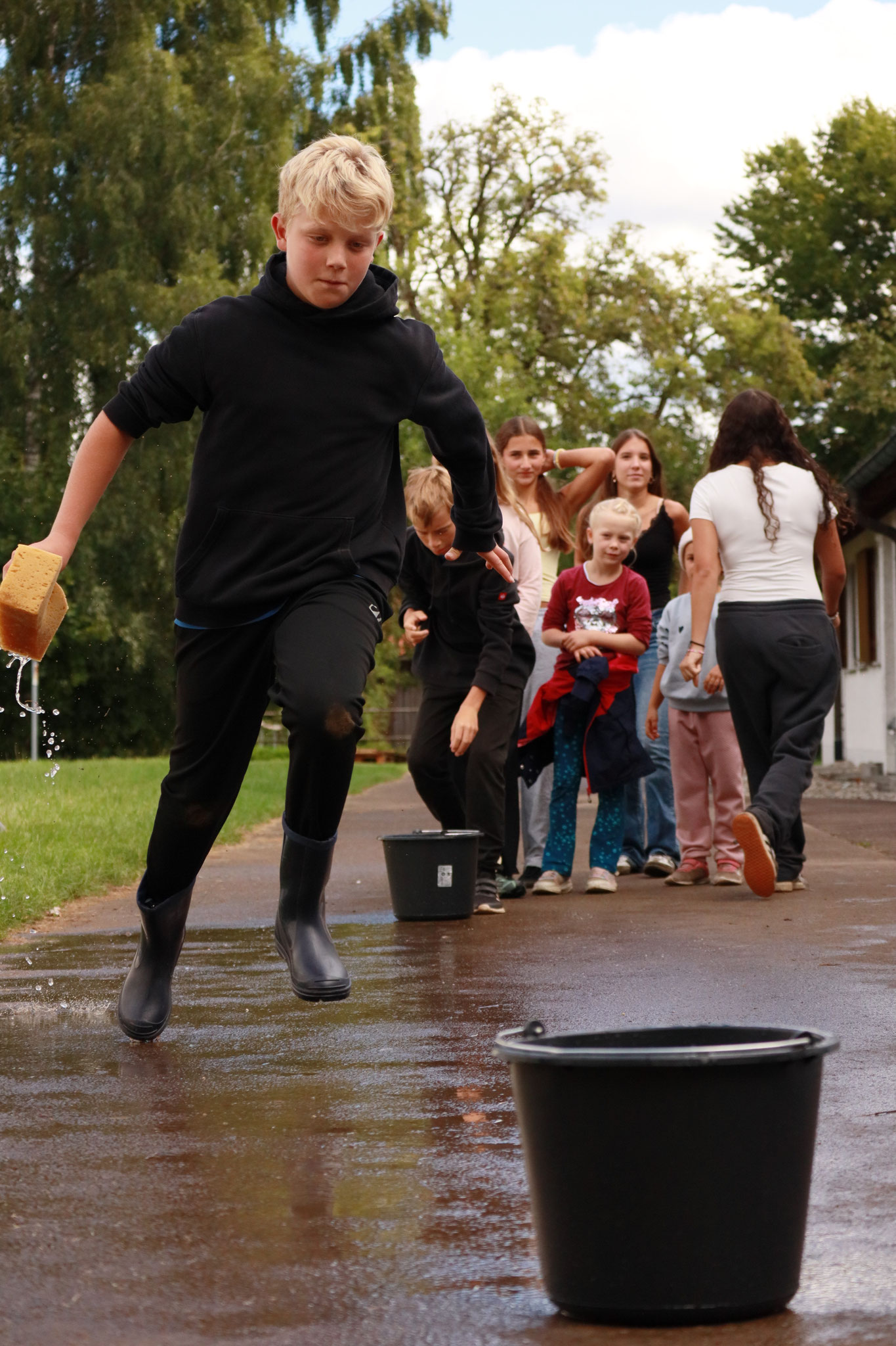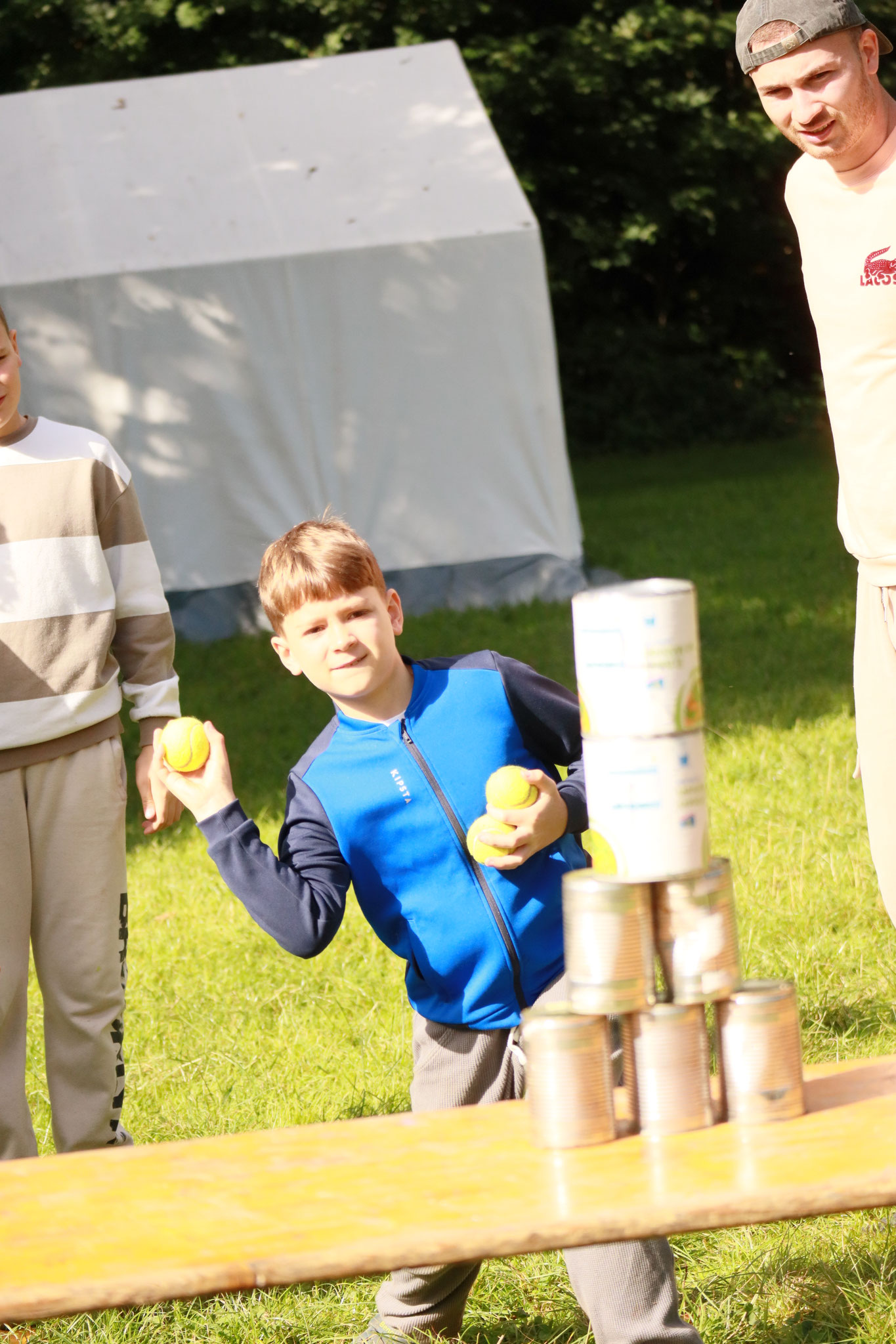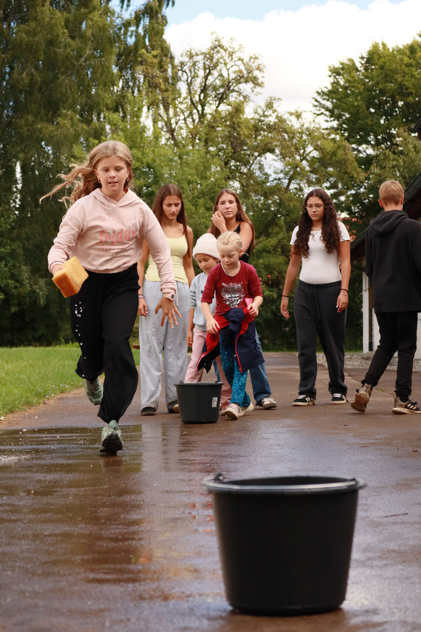 An verschiedenen Stationen konnten die Gruppen die benötigten Gegenstände erspielen: vom Schlafsack bis zum Namensschild. Dazu gehörten Aufgaben wie Stangenweitwurf, ein Farbenrätsel, „Stift-in-Flasche“, das Entwerfen eines Fantasiewappens und vieles mehr. An jeder Station erhielten die Teams Bauteile für ihr persönliches Zeltschild. Mit viel Kreativität wurde gemalt, gehämmert und gebastelt, bis schließlich alle Gruppenschilder fertig waren. Zum Abschluss erzählte Julian eine kleine Geschichte über einen Stern – und passend dazu bekam jede Zeltgruppe einen fluoreszierenden Stern für ihr Zelt.