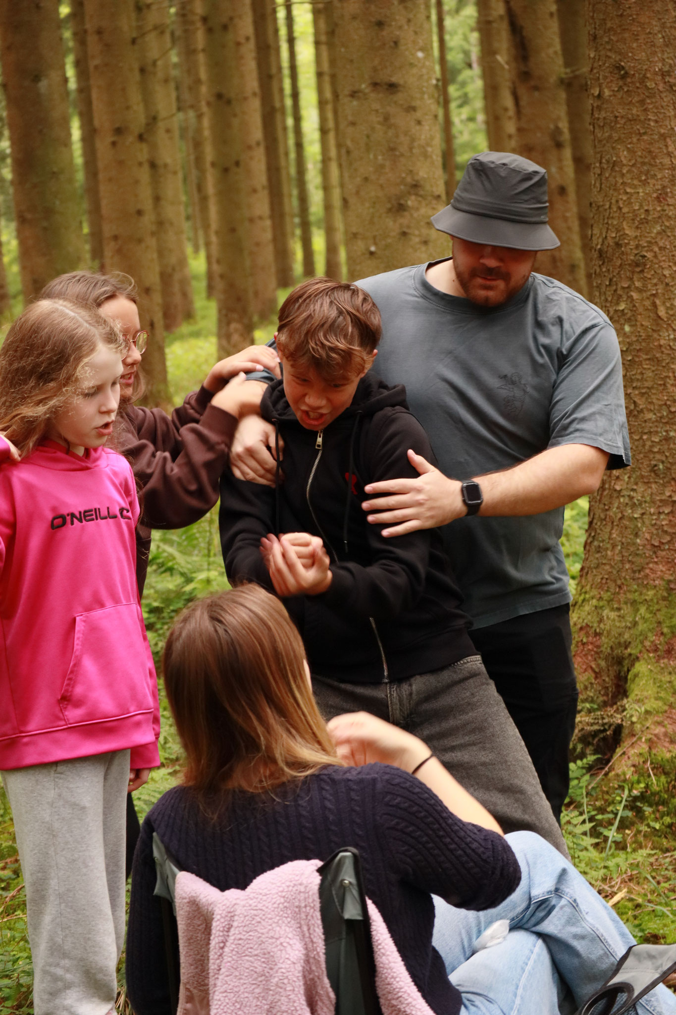 Gestärkt mit den neu erworbenen Skills aus dem Vormittag ging es dann ins Gelände: Der Wald war in Gefahr! Als frisch ausgebildete Hüter kämpften die Kinder gegen Wilderer, Umweltverschmutzer und
