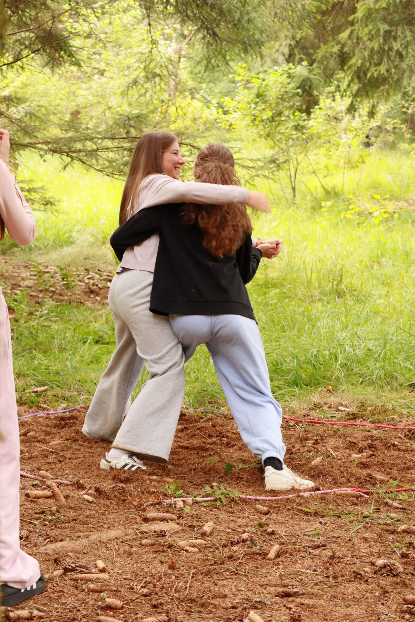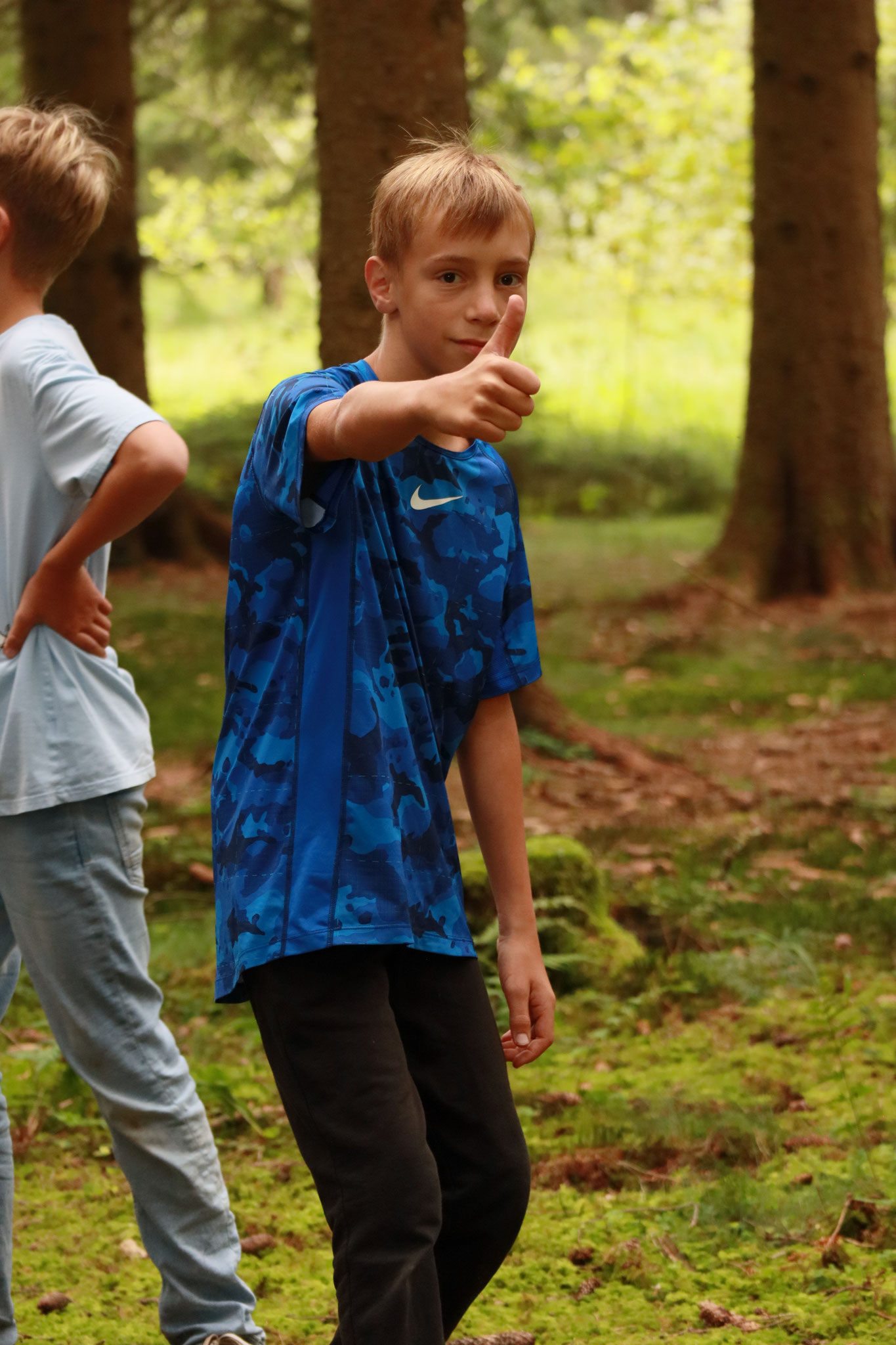 Bei wechselhaftem Sonnenschein starteten wir energiegeladen in den neuen Tag. Zur Morgenwache erklärte ich (Andi) das Spiel „Schnick-Schnack-Schnuck mit Fanclub“: Gespielt wird eins gegen eins, bis ein Sieger feststeht. Der Verlierer wird automatisch zum Fanclub und feuert seinen Gegner lautstark an. So wuchs der Jubel bei jeder Runde, bis schließlich zwei Kinder im Finale standen – angefeuert von je 30 bis 40 Mitspielern!