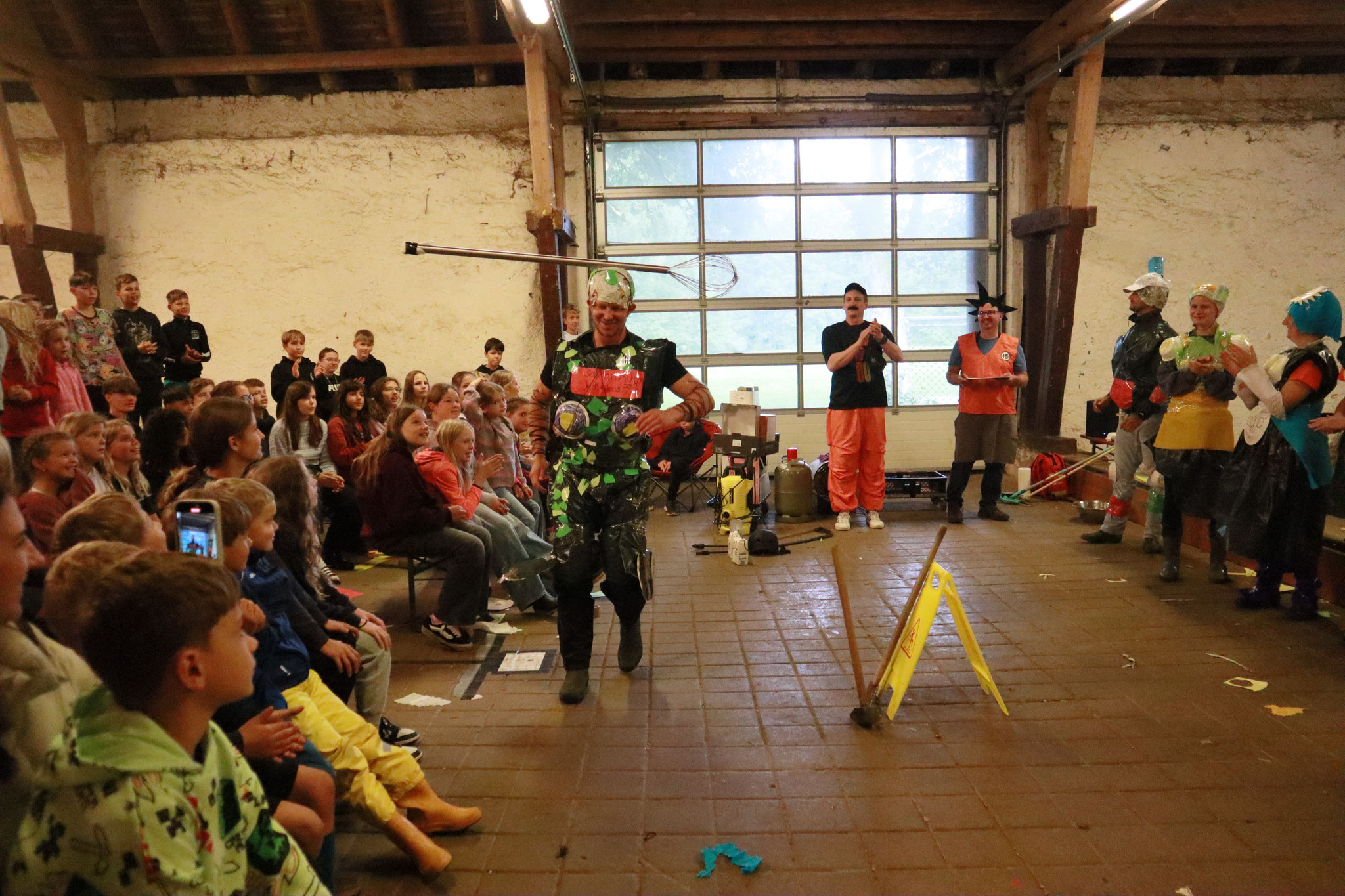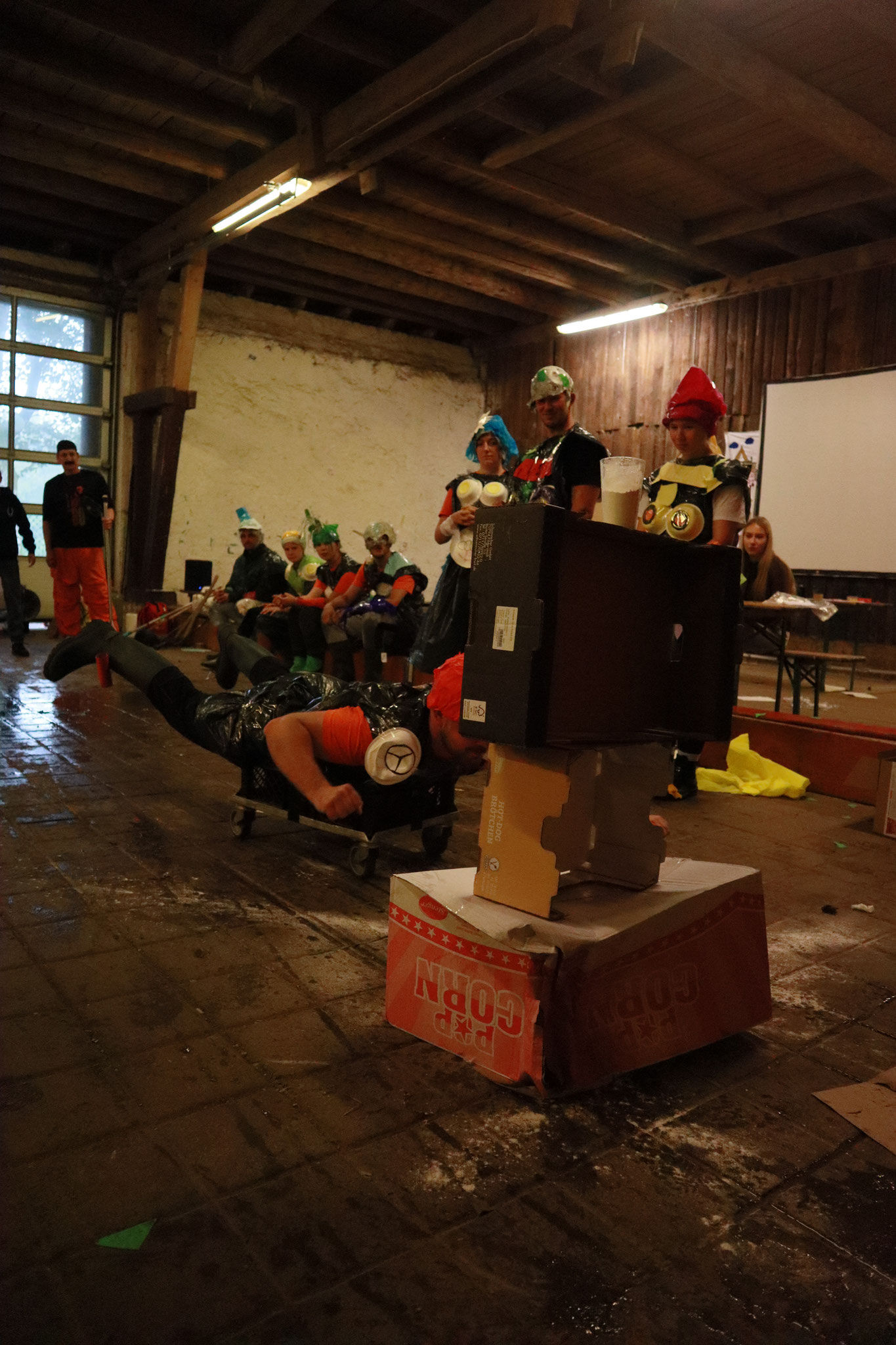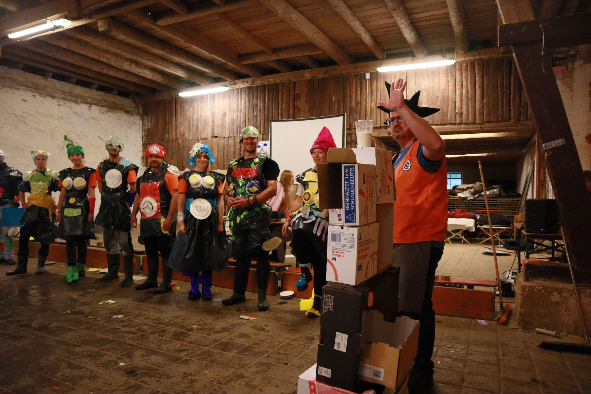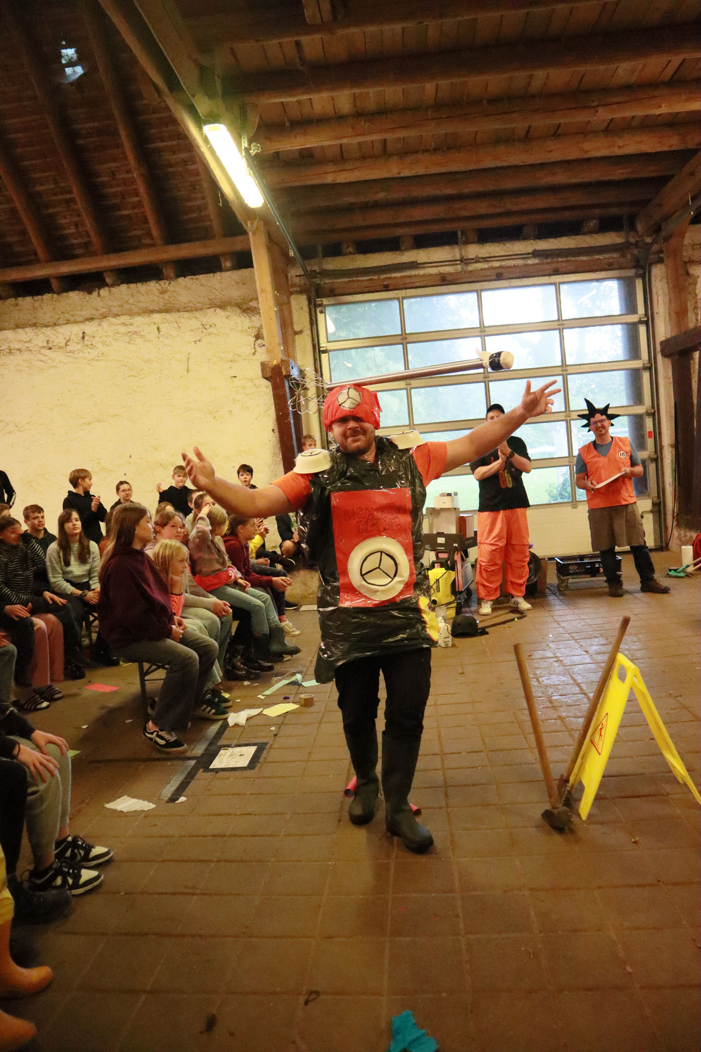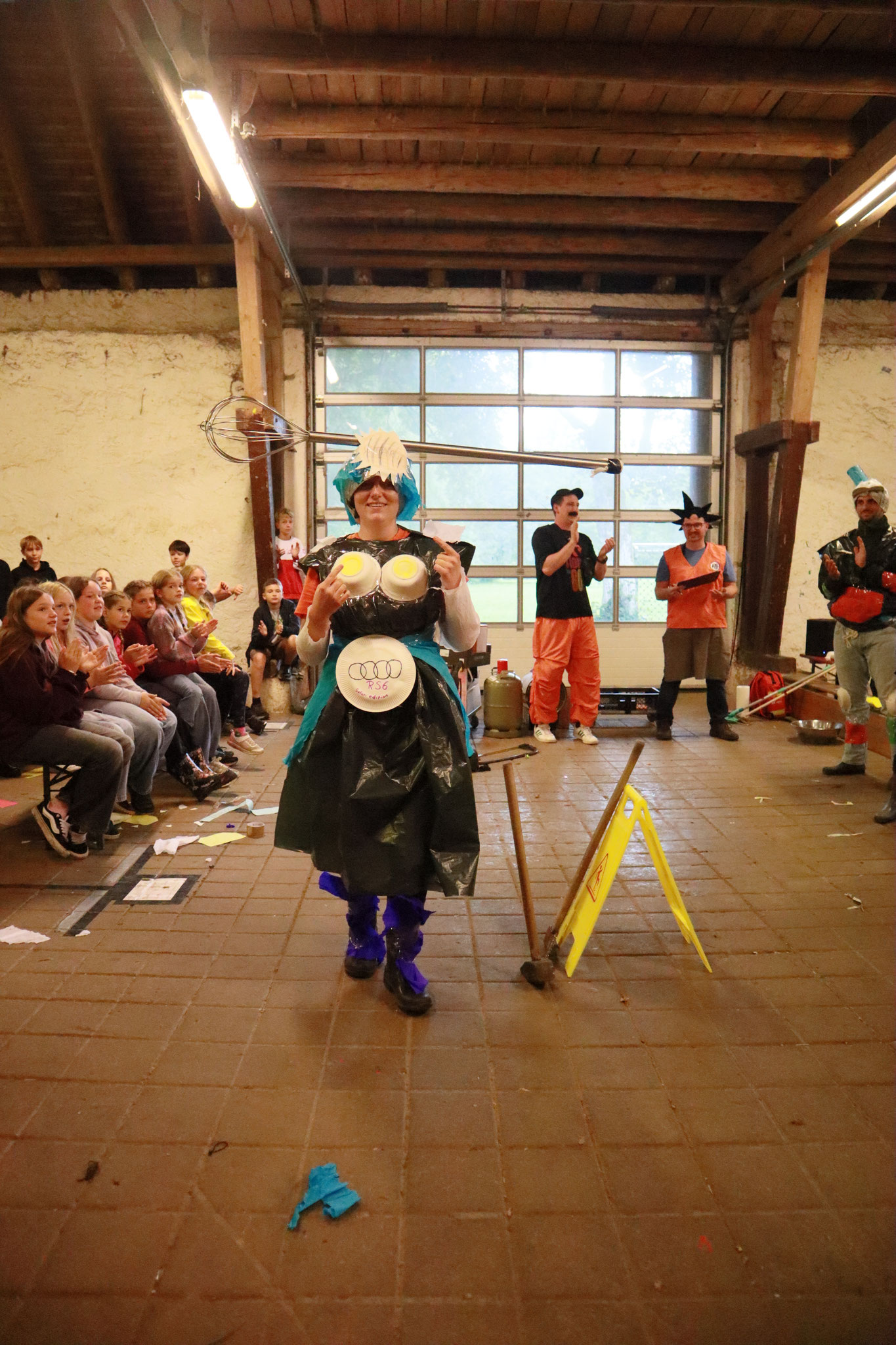 In jeder Zeltgruppe wurde der jeweilige Zeltleiter in ein Auto verwandelt – mit allem, was Bastelkiste und Fantasie hergaben. Es wurde geschnipselt, geklebt, gerissen und gemalt. Das Ergebnis: acht völlig unterschiedliche, kreative und einzigartige Fahrzeuge. Doch waren sie auch safari-tauglich? Diese Frage klärte unsere eigens eingeflogene Jury aus Kasachstan – bestehend aus den „Experten“ Atze und Oli aus der Küche. In skurrilen Verkleidungen und mit allerlei Gadgets unterzogen sie die Fahrzeuge mehreren Tests. Selten wurde bei einem Spiel so herzlich gelacht.